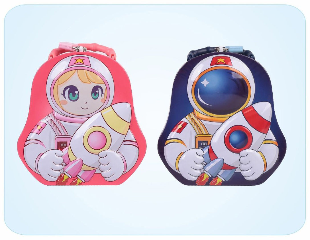 GenZ Piggy Bank for Kids – Space Kid Money Saving Tin Coin Bank with Lock and Key, Metal, Boys (Blue)