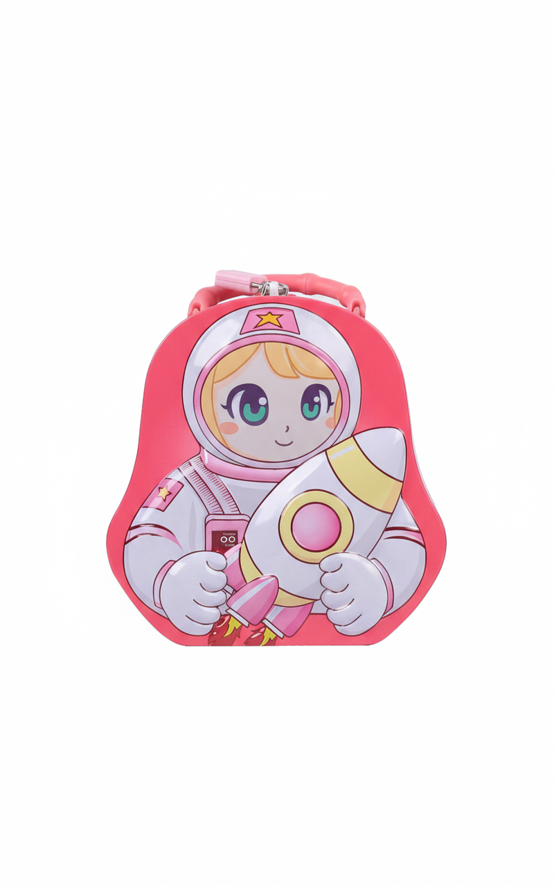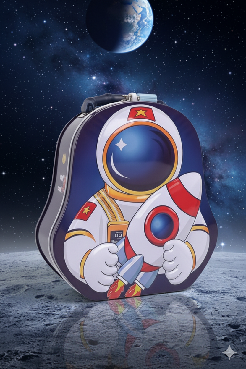 Encourage little astronauts to save with this Space Money Saving Tin Coin Bank! Crafted from sturdy metal in a fun blue shade, it features a secure lock and key to keep their treasures safe. Perfect for teaching kids the joy of saving while adding a touch of cosmic charm to any room. Watch their savings—and imaginations—blast off!